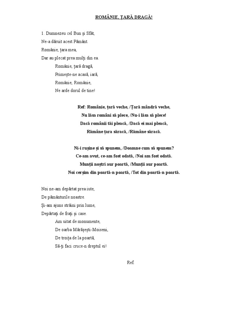 ( românia, țara mea frumoasă, un colț de rai. Ntins pe muni i pe vi, cu fete cu flori la ureche, ileana bumbac cu mndri i ageri flci! Drepturi de autor sunteți pe pagina 1din 3.