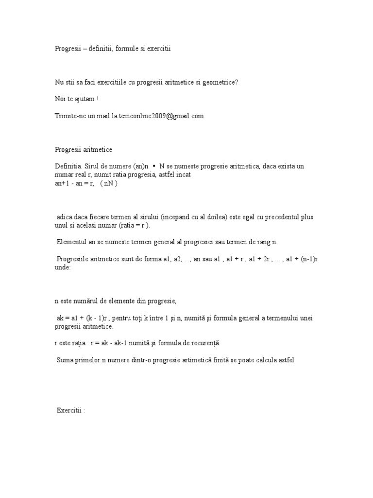Sa Se Determine Termenii De Rang 10 15 20 Ai Progresiei Aritmetice