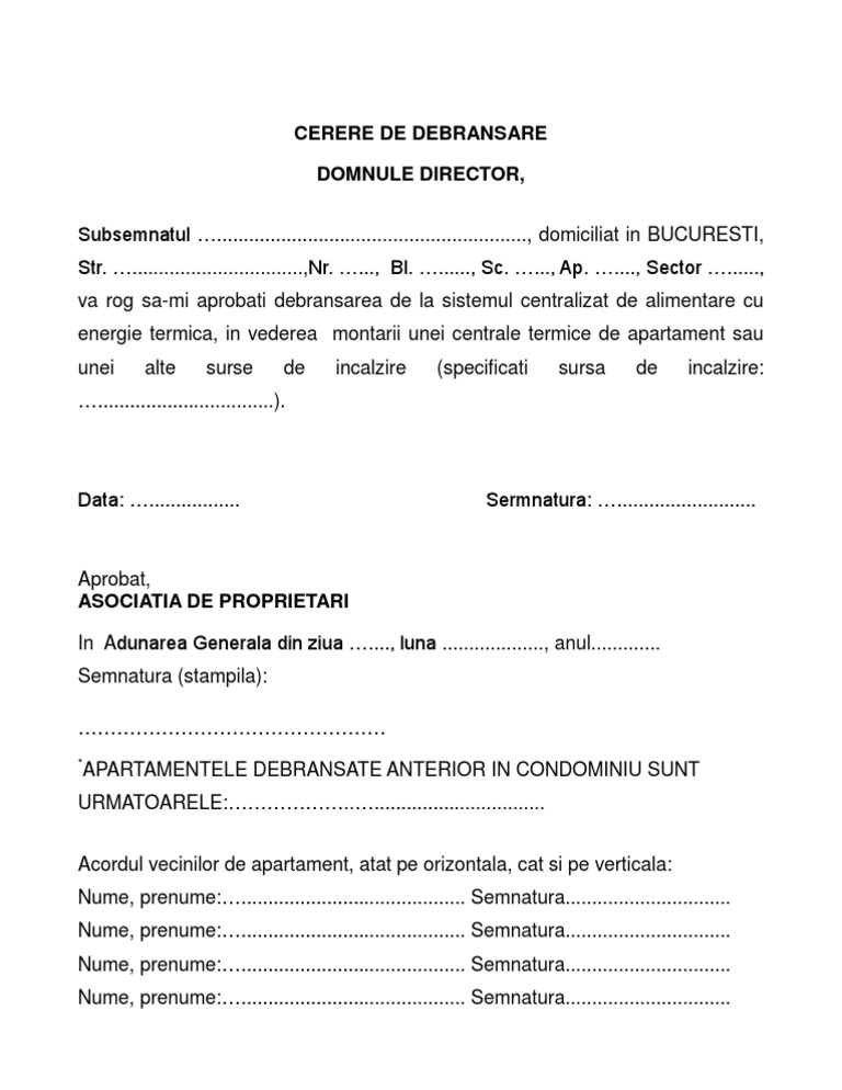 Privind debranşarea totală de la sistemul de termoficare centralizat a apartamentului nr….………., situat în notă : Acordurile reprezintă a doua fază a proiectului privind asigurarea interconexiunii sistemului de transport de gaze naturale… guvernul a semnat, ieri, acordurile de finanțare, în sumă totală de 92 de milioane de euro, cu banca europeană pentru investiții și banca europeană pentru reconstrucții. Racordarea la gaze a clientilor casnici va fi normal trebuie semnături de la apartamentele vecine si acordul lor pentru a te putea racorda la reteaua de.